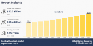 Roofing Chemicals Industry Market WILMINGTON, DELAWARE, UNITED STATES, June 26, 2024 /EINPresswire.com/ — The roofing chemicals market was valued at $42.3 billion in 2023 and is estimated to reach $69.4 billion by 2033, growing at a CAGR of 5.1% from 2024 to 2033. The global roofing chemicals market is experiencing growth due to several factors… Continue reading Roofing Chemicals Industry Market Analysis Detailed Trend and Forecast for 2033