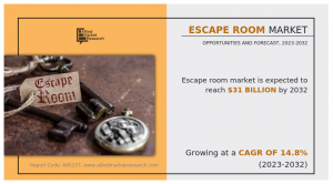 WILMINGTON, NEW CASTLE, DELAWARE 19801 USA, UNITED STATES, July 10, 2024 /EINPresswire.com/ — According to a new report published by Allied Market Research, titled, “Escape Room Market,” The escape room market size was valued at $7.9 billion in 2022, and is estimated to reach $31 billion by 2032, growing at a CAGR of 14.8% from 2023 to 2032. The report provides a detailed analysis of the top investment pockets, top winning strategies, drivers & opportunities, market size & estimations, competitive landscape, and changing market trends.