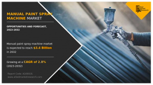WILMINGTON, DELAWARE, UNITED STATES, May 22, 2024 /EINPresswire.com/ — The Manual Paint Spray Machine Market, valued at $2.4 billion in 2020, is projected to reach $3.4 billion by 2032, growing at a CAGR of 2.8% from 2023 to 2032. Manual paint sprayers are widely used by professionals and DIY enthusiasts to coat surfaces efficiently. These machines atomize liquid paint using external pressure, allowing for precise and swift application. Available in various sizes and capacities, manual paint spray machines cater to both professional and non-professional users due to their ease of use and versatility.
