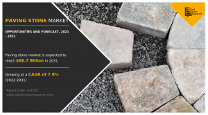 WILMINGTON, DELAWARE, March 4, 2024 /EINPresswire.com/ — The paving stone market was valued at $40.3 billion in 2021, and is estimated to reach $86.7 billion by 2031, growing at a CAGR of 7.9% from 2022 to 2031.