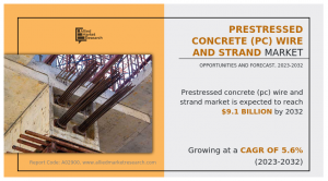 WILMINGTON, DELAWARE, UNITED STATES, April 5, 2024 /EINPresswire.com/ — Prestressed Concrete (PC) Wire And Strand Market By Type (3 Wire Strand, 7 Wire Strand, Other), By Application (Pre-Tensioning, Bonded Post-Tensioning, Unbonded Post-Tensioning), By End User Industry (Building Construction, Infrastructure): Global Opportunity Analysis And Industry Forecast, 2023-2032″. According to the report, the global prestressed concrete (PC) wire and strand industry generated $5.2 billion in 2022, and is anticipated to generate $9.1 billion by 2032, witnessing a CAGR of 5.6% from 2023 to 2032.